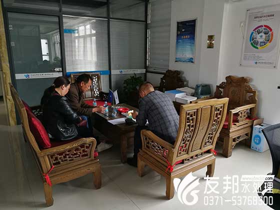 2019.4.25早上來自山西晉城的客戶來到我們鄭州友邦水處理設備有限公司。 我們張經理親自接待他們,帶他們參觀我們樓下的設備生產車間詳細講解友邦水處理設備的工藝流程以及生