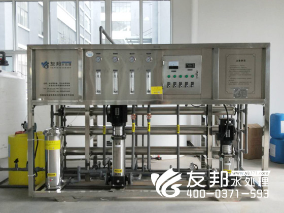 我們鄭州友邦為其定制純凈水設(shè)備由反滲透系統(tǒng)、反滲透裝置及其預(yù)處理和后處理三部分組成。反滲透系統(tǒng)的核心是反滲透裝置,預(yù)處理的目的是使原水達(dá)到反滲透膜組件的進(jìn)水要求,是反滲透裝置能否長期穩(wěn)定運(yùn)行的前提。